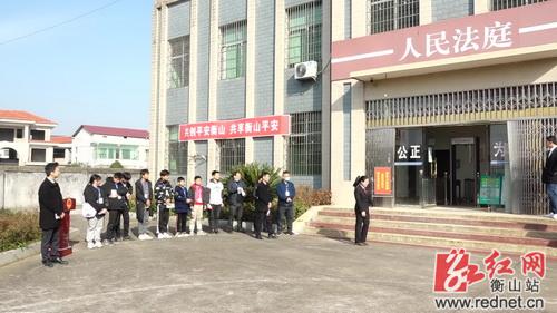 活动现场,工作人员带领大家参观调解室、诉讼服务中心、审判庭、办公区等区域,让大家了解办案流程和熟悉办案环境。工作人员还邀请学生分别扮演审判员、书记员等角色,身临其境感受在法庭如何办案。现场气氛活跃,同学们纷纷当起了“小法官”,了解法庭办案程序,增强法治意识。随后,工作人员还向大家展示了防爆器材的使用方法,并与同学们共同进行宪法宣誓。