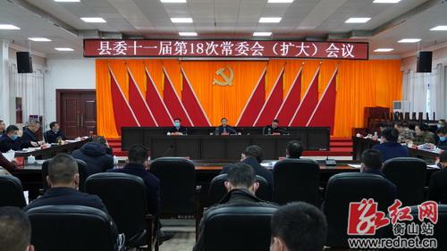 2月8日,县委书记戴新贤主持召开县委十一届第18次常委会(扩大)会议,传达学习衡阳市“聚力中心化攻坚年”行动动员大会会议精神,听取2021年度全县重点项目建设和企业联手帮扶工作考核情况汇报,审议《衡山县2022年“高质量产业项目建设年”及企业联手帮扶活动方案》,研究全县“三高四新”财源建设考核奖励工作。
