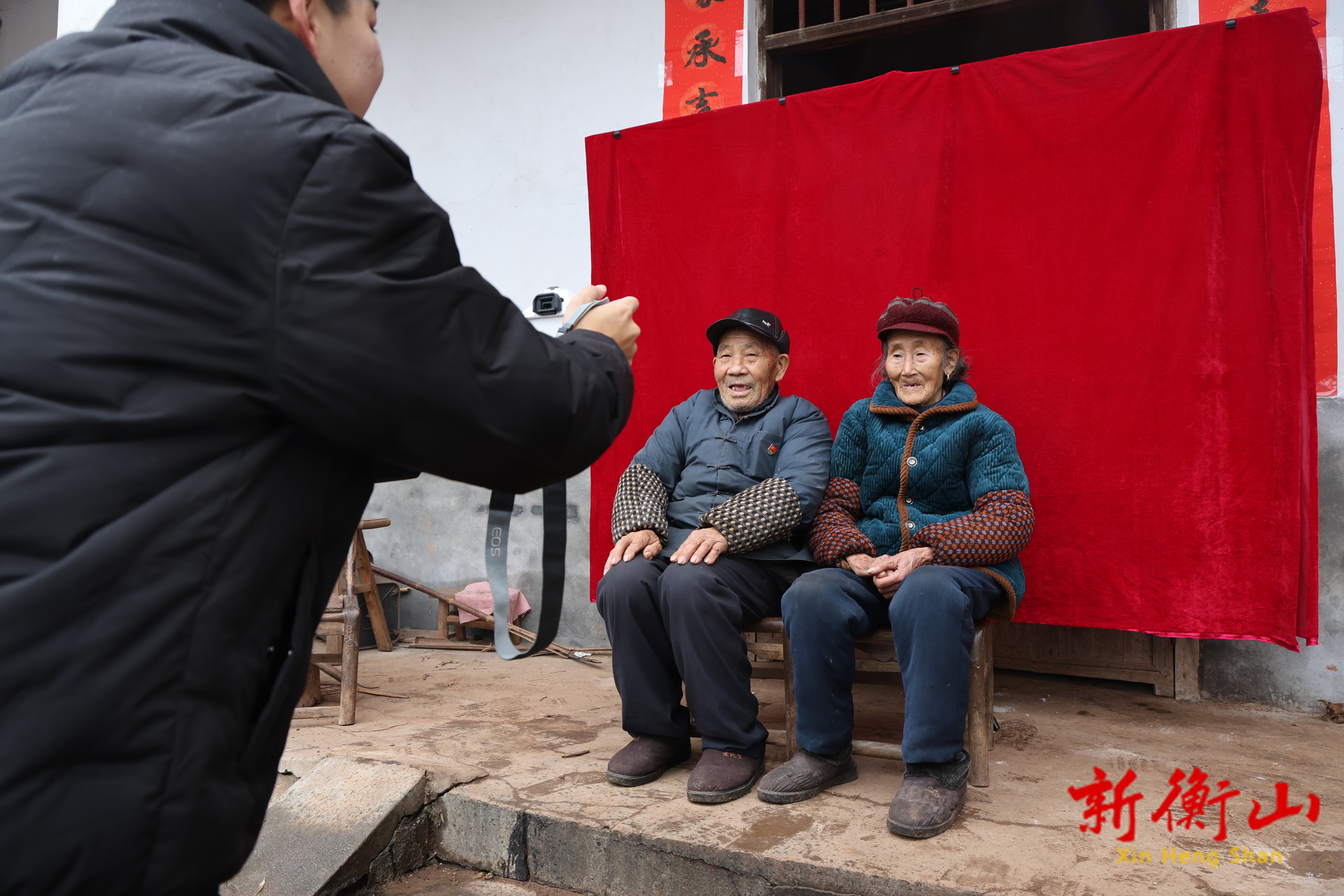 “很久没有这么正式地拍照了!今天大家都费了心,特意过来看我们这些老人家,还来帮我们拍照。”衡山县萱洲镇堰江村84岁的聂益清在志愿者协助下整理衣领,面对镜头笑容舒展。