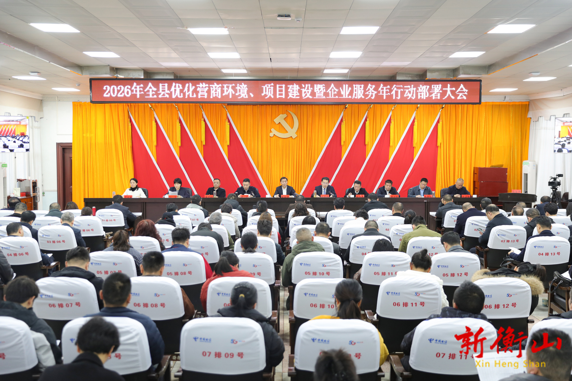 2月27日,全县优化营商环境、项目建设暨企业服务年行动部署大会召开。衡阳市政协副主席、衡山县委书记戴新贤出席会议并讲话,强调要以“开局即决战”的姿态,全力打好项目建设、企业帮扶、优化营商环境主动仗,为实现“十五五”良好开局奠定坚实基础。县委副书记、代县长陈瑞来全面讲评2025年度全县优化营商环境、项目建设及企业联手帮扶工作,并就2026年度上述三项重点任务的推进落实作部署报告。县委副书记、政法委书记谢斌主持会议并通报2025年度全县重点项目建设情况。县人大常委会主任旷志军,县政协主席唐年初出席。