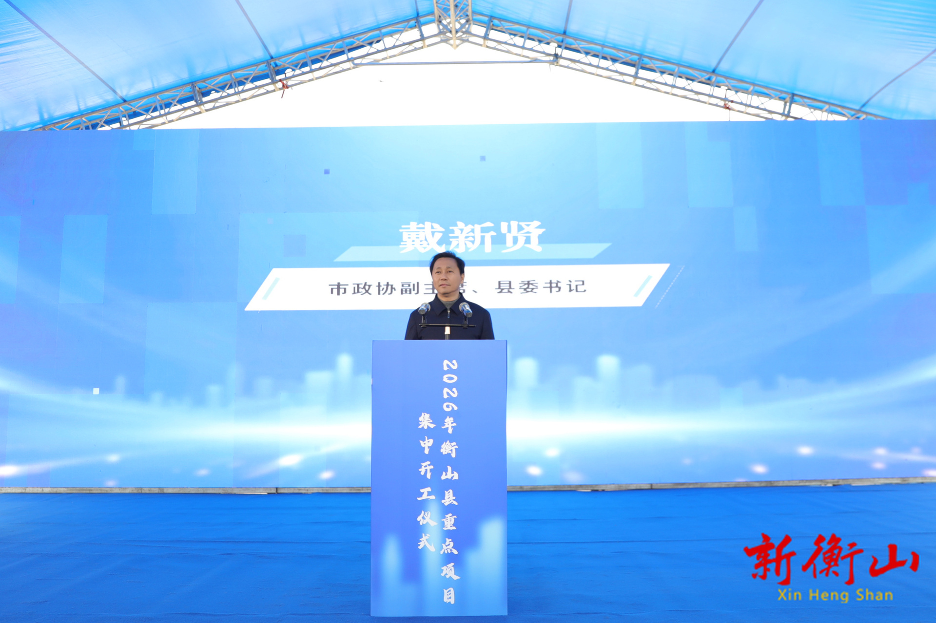 2月24日,衡山县2026年重点产业项目集中开工仪式在衡山智能制造产业园举行。衡阳市政协副主席、衡山县委书记戴新贤宣布项目开工。县委副书记、代县长陈瑞来主持仪式。县委副书记、政法委书记谢斌,县人大常委会主任旷志军,县政协主席唐年初出席活动。