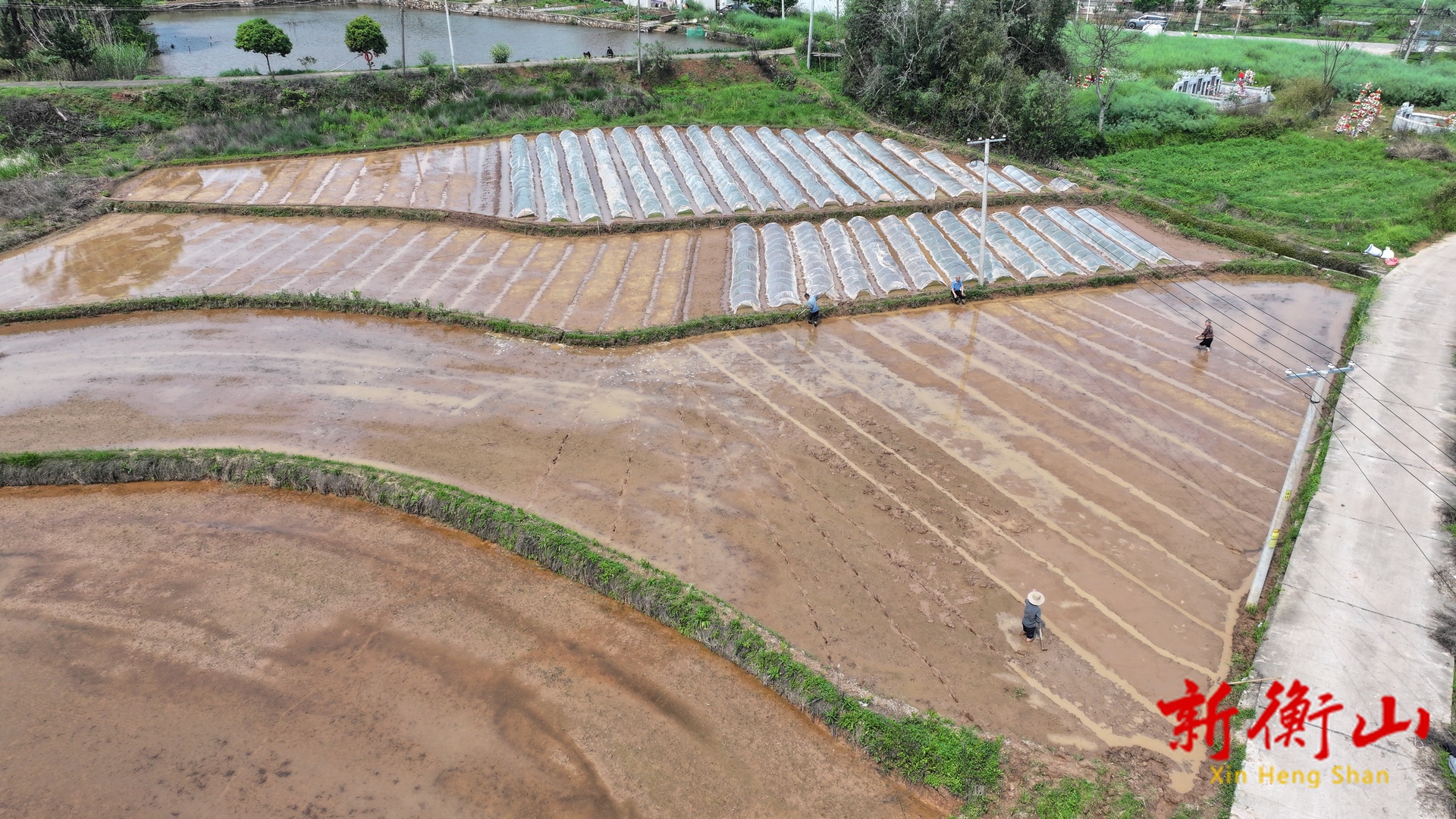 (村民们抢抓时节进行育秧工作)