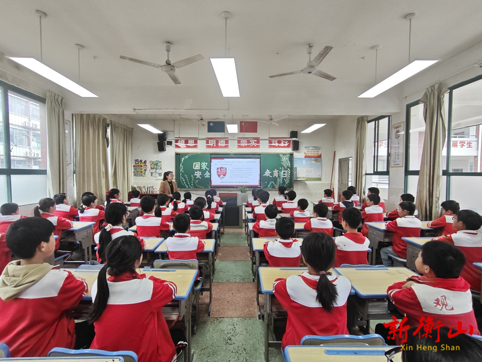 活动的最后,全体同学在老师的带领下,举起右拳进行了庄严宣誓,铿锵有力的誓言在教室里回荡,表达了孩子们维护国家安全的坚定决心。