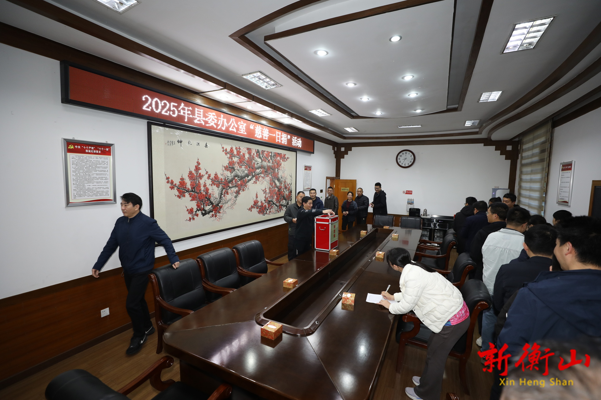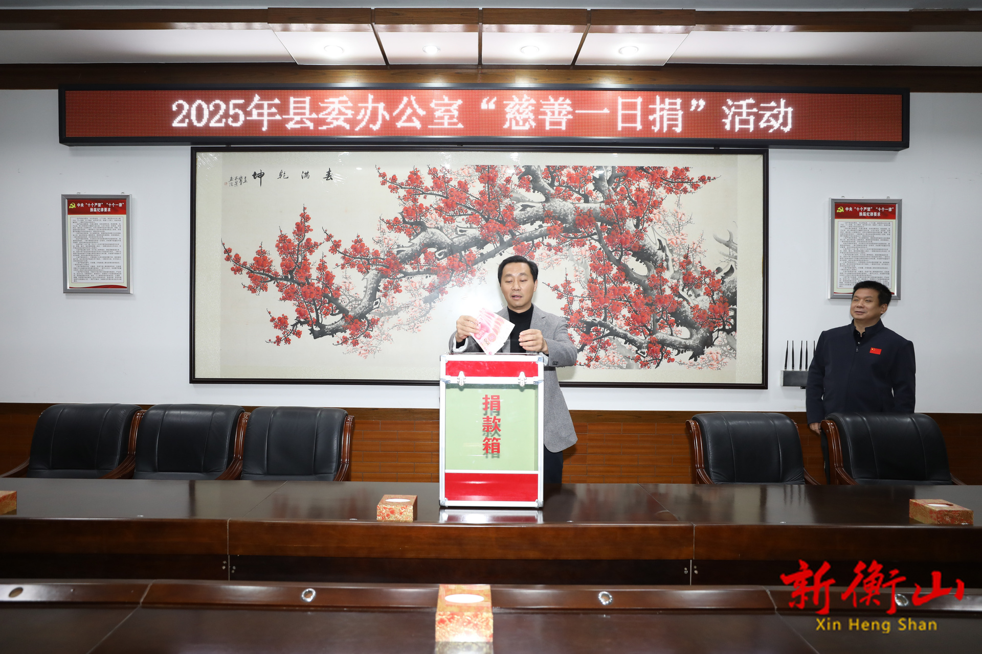 12月20日,县委办公室组织开展“慈善一日捐”活动,以实际行动弘扬乐善好施、扶危济困的传统美德,传递党和政府的温暖与关怀。衡阳市政协副主席、衡山县委书记戴新贤带头参加捐款。